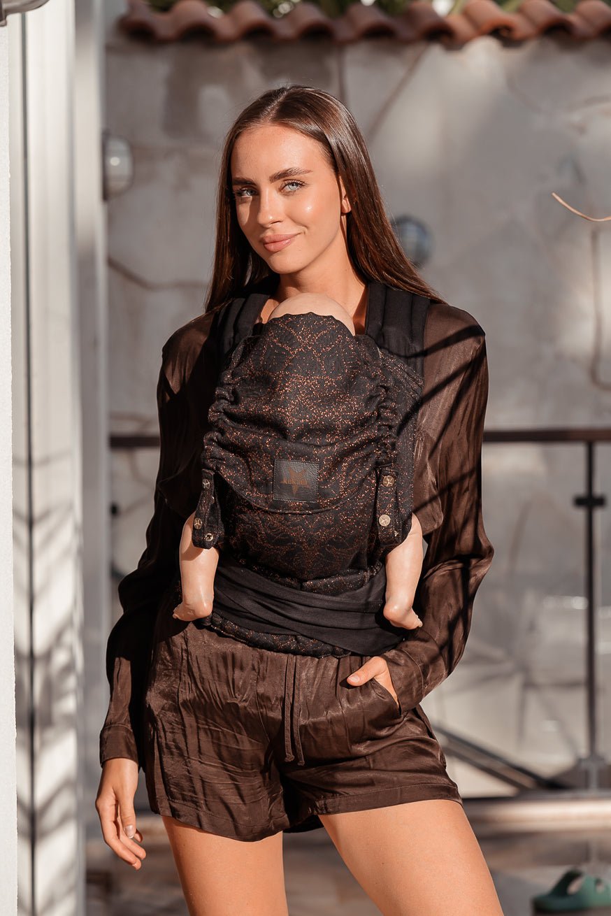 Ein Hauch Luxus für jeden Tag. Gepolsterte Schulterträger und ein weiches Hüftgurt-System sorgen für optimalen Halt. Der fließend weiche Stoff bettet dein Baby sanft an deine Brust – ganz leicht, ganz natürlich.